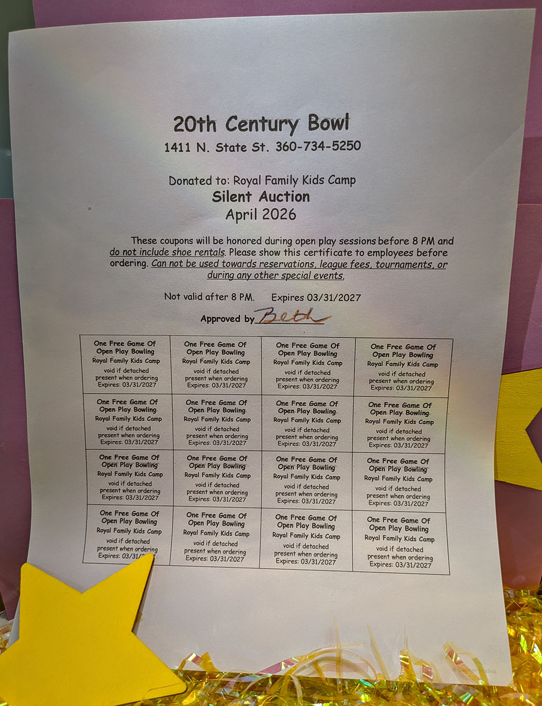 Auction Packages - Donated by Local Businesses